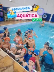 O ensino e a prática da natação não se resumem aos cinco nados conhecidos e tradicionais: crawl, costas, peito, borboleta e medley. A natação, principalmente a infantil entre 3 e 15 anos, engloba desde adaptação à água onde buscamos uma interação total da criança com o ambiente aquático até o controle corporal em situações adversas como procuramos fazer aqui na academia, toda ultima semana de cada mês. Nesses eventos semanais procuramos enfatizar técnicas de mergulhos e saídas dos nados, viradas e principalmente segurança aquática. Nas atividades de segurança aquática simulamos quedas na água, técnicas de auto salvamento, natação de sobrevivência em águas turbulentas e muito mais. Obviamente as atividades são direcionadas dentro da idade e capacidade técnica e física das crianças. O objetivo principal é mostrar e lembrar às crianças os cuidados com espelhos d’água, que é como chamamos piscinas, lagos, mar, etc. Esses cuidados envolvem respeitar colegas na borda da piscina, não entrar no mar ou piscina sem estar acompanhados pelos pais ou professores, respeitar os professores nas aulas de natação e várias outras atividades de valorização à vida e ao ambiente aquático. As atividades são desenvolvidas com caráter lúdico pois entendemos que brincando, as crianças absorvem melhor as informações passadas e retransmitem à outras crianças formando uma corrente do bem que pode salvar vidas. Entendemos que a conscientização dos limites ao ambiente aquático vem desde cedo e a disciplina, mesmo numa aula lúdica de natação, é fundamental para a formação de uma criança. Enfim, a natação que nós ensinamos e desenvolvemos com as crianças vai além dos nados tradicionais para, justamente, enraizar a prática de um esporte maravilhoso pelo resto da vida e não apenas por alguns meses ou anos. A gradação é necessária para dar chance à criança de entender o que está acontecendo e poder assimilar todo o ensinamento sem pressa e sem traumas. A cada limite, estimulamos e esperamos a reação dos pequenos para depois sim motiva-los a um próximo estágio. Natação infantil é segurança para a vida!