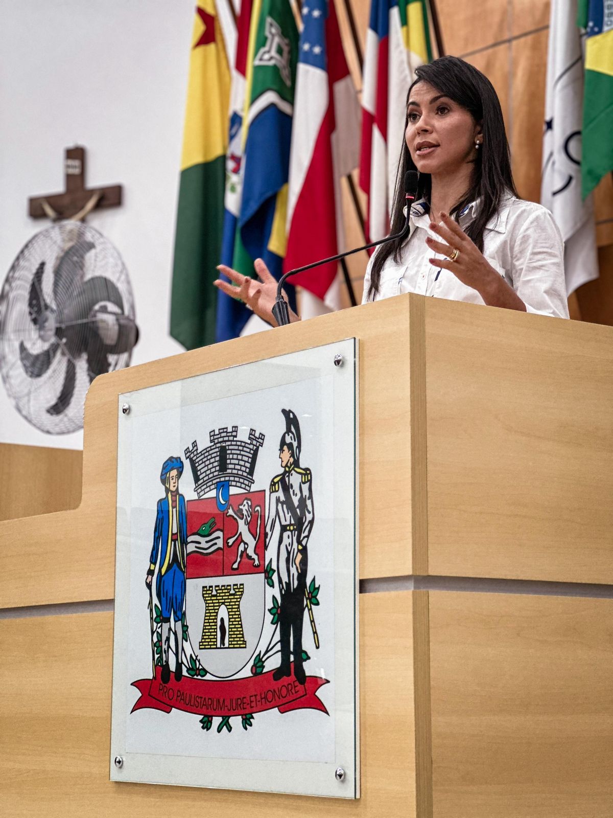 A advogada, primeira-dama e presidente licenciada do Fundo Social de Solidariedade de Arujá, Clau Camargo, recebeu uma Moção de Aplausos na Câmara Municipal de Jacareí, durante sessão ordinária realizada nesta quarta-feira (15). A homenagem foi proposta pelo vereador Juex Almeida, em reconhecimento ao trabalho desenvolvido em Arujá por meio do projeto Vale Reciclar.