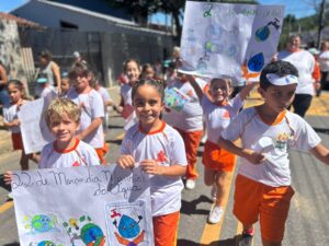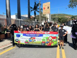 Os alunos da Escola Municipal “Professora Célia Leonor Lopes Lunardini”, no bairro Itapema, em Guararema, participaram no dia 23/03, de uma passeata contra a dengue e de conscientização sobre o Dia Mundial da Água. Organizada pela equipe gestora da escola, a iniciativa reuniu turmas da manhã e da tarde, que percorreram as ruas com cartazes e adereços criativos para levar mensagens educativas sobre os dois temas.