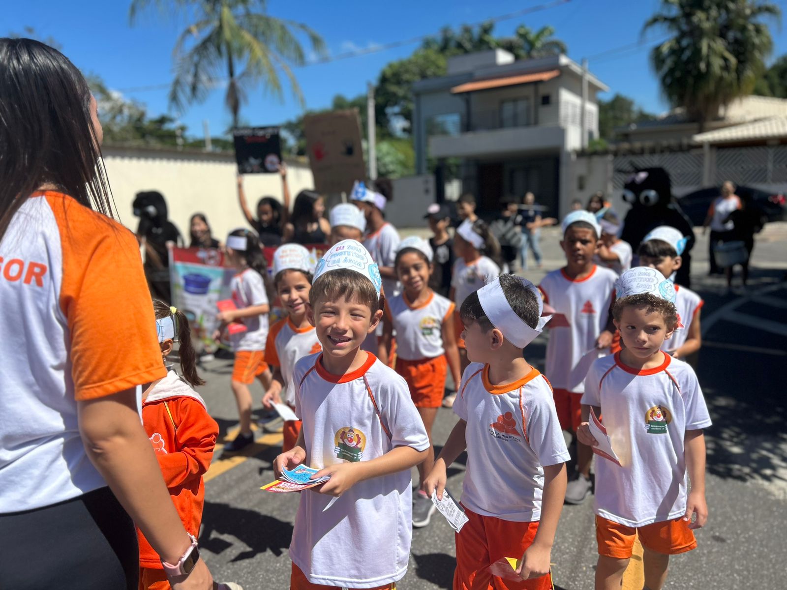 Os alunos da Escola Municipal “Professora Célia Leonor Lopes Lunardini”, no bairro Itapema, em Guararema, participaram no dia 23/03, de uma passeata contra a dengue e de conscientização sobre o Dia Mundial da Água. Organizada pela equipe gestora da escola, a iniciativa reuniu turmas da manhã e da tarde, que percorreram as ruas com cartazes e adereços criativos para levar mensagens educativas sobre os dois temas.