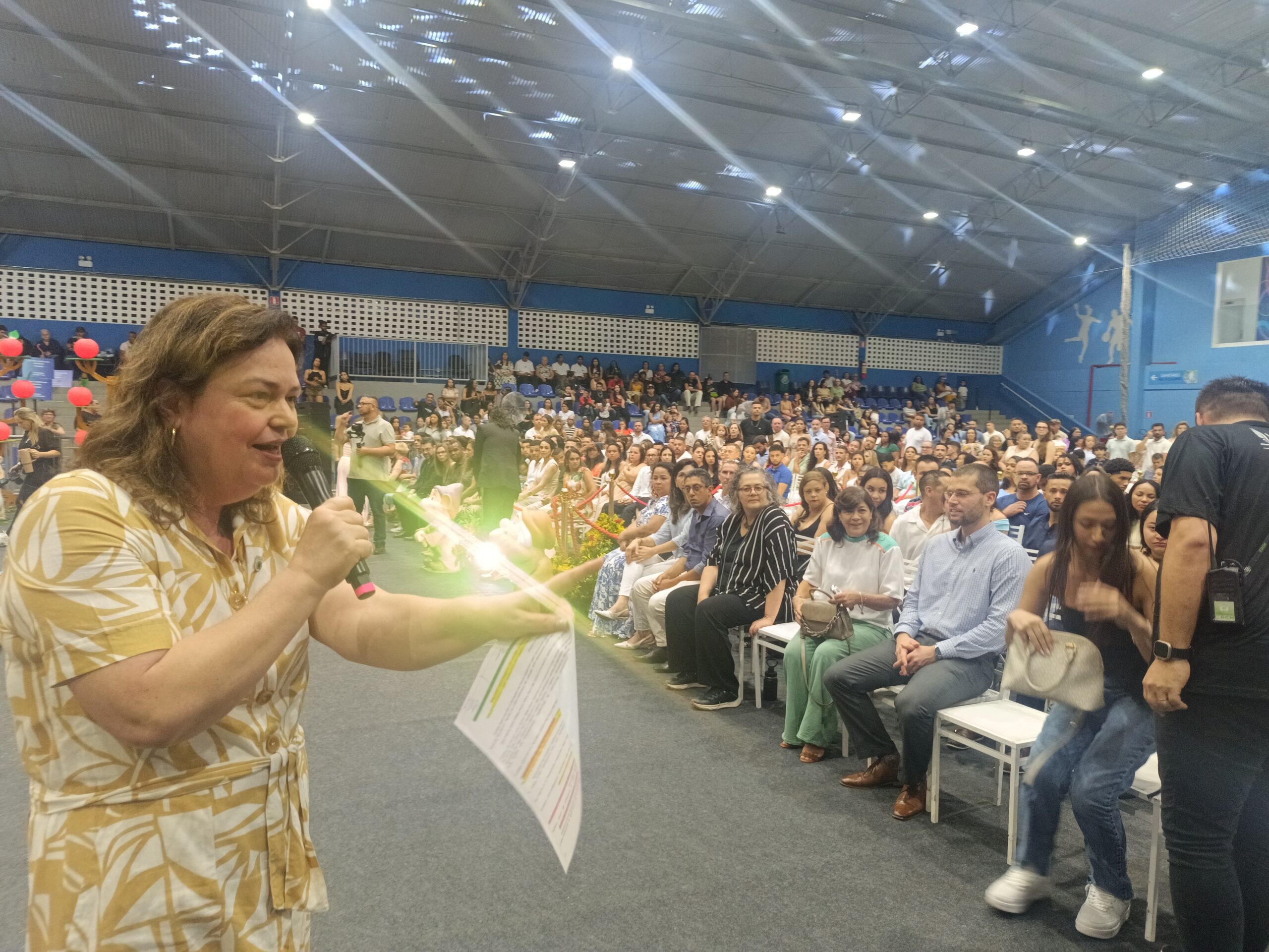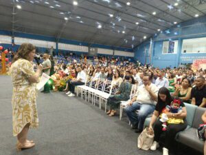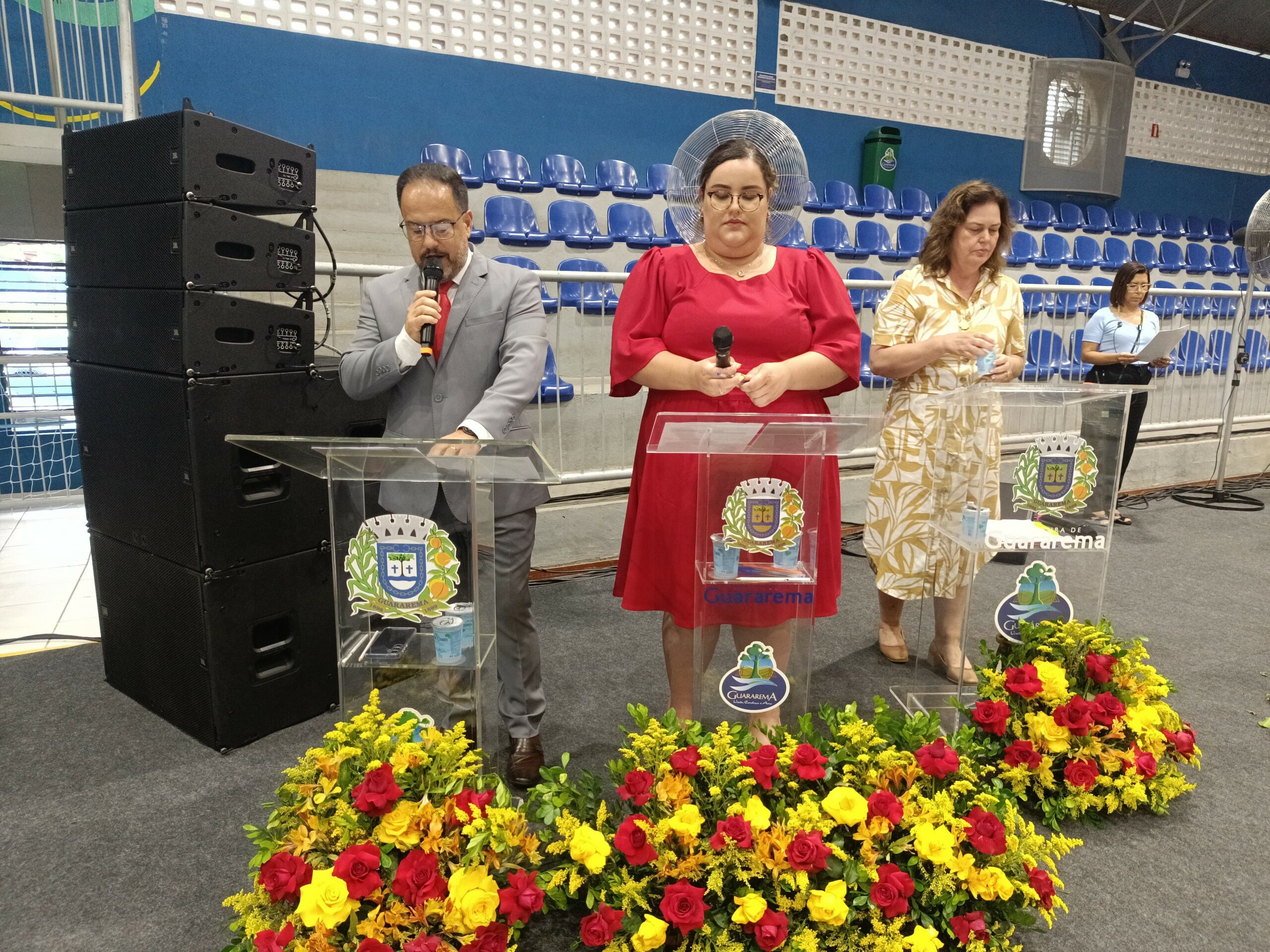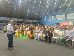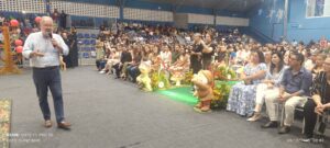 Cerimônias realizadas no Ginásio Municipal Lázaro Germano contou com a marcante presença da eterna Prefeita Conceição Alvino de Souza, Prefeito José Luiz Eroles Freire (Zé), vice-prefeito Odvane, vereadores, das equipes escolares e das famílias que foram prestigiar os alunos.