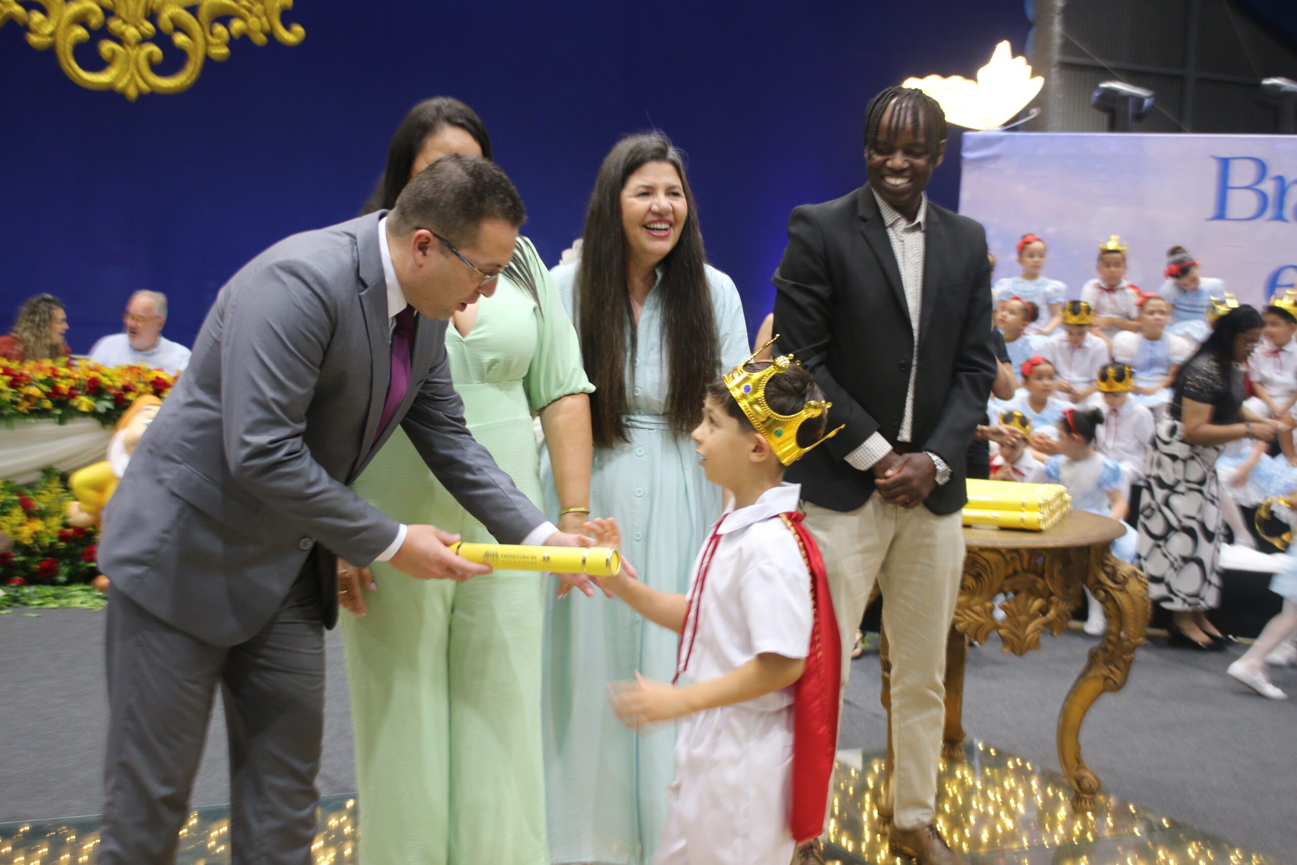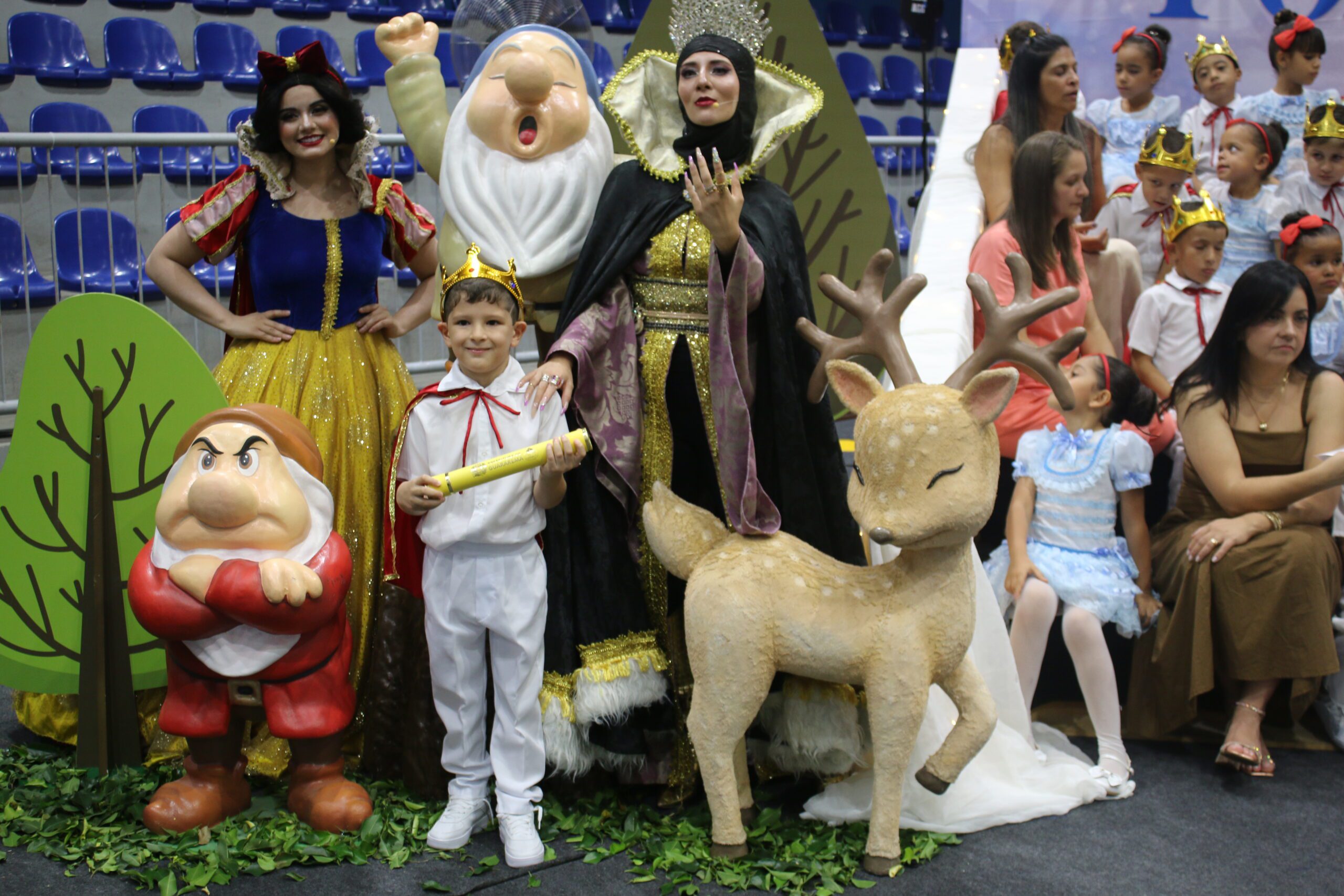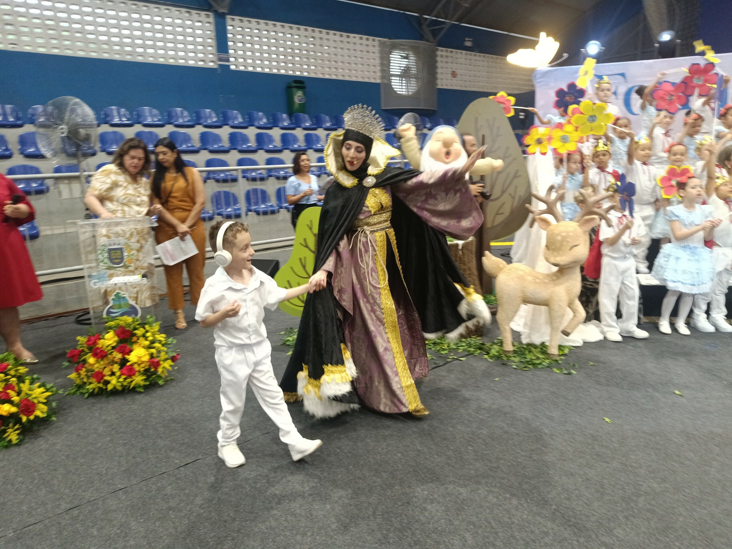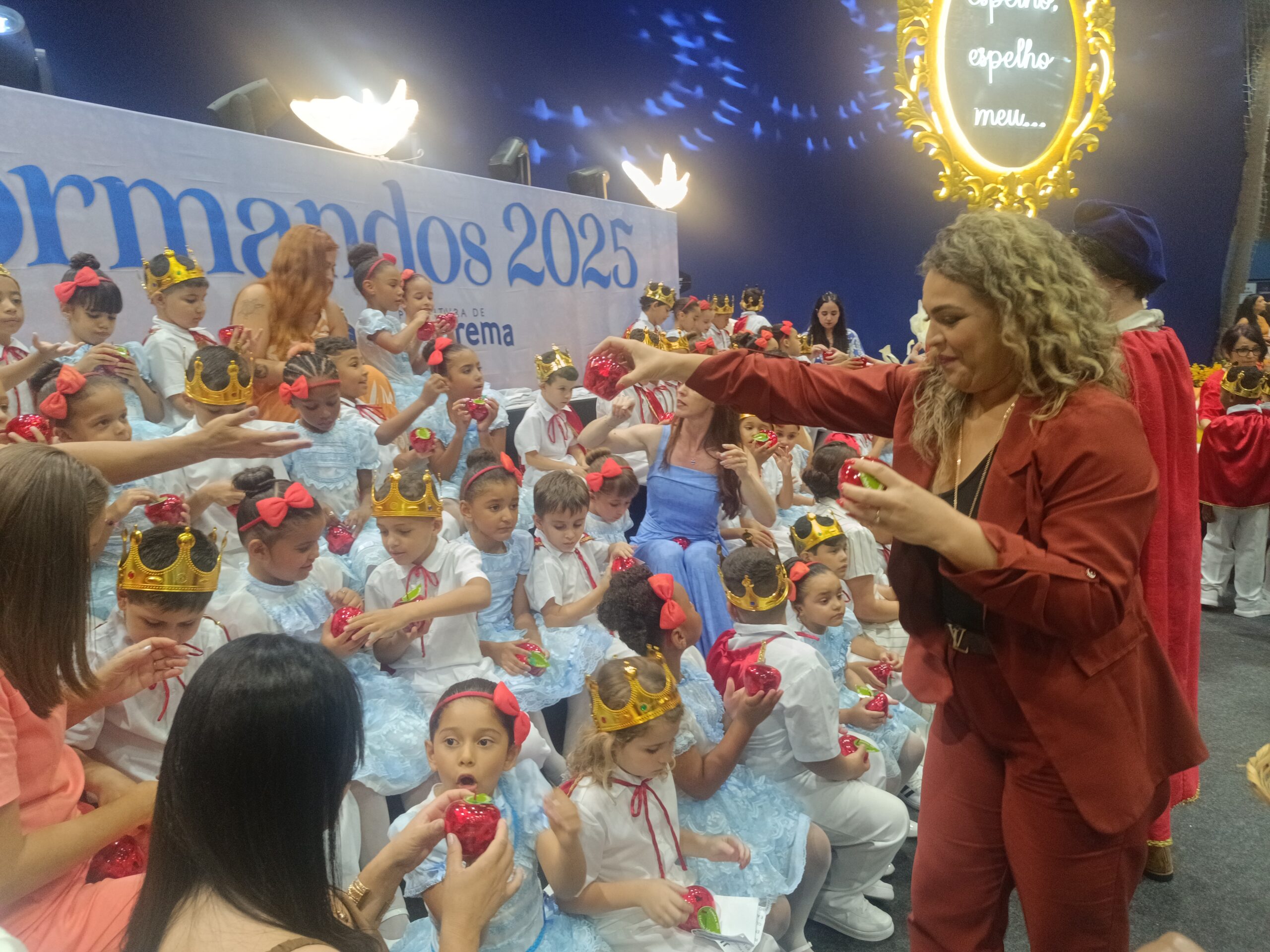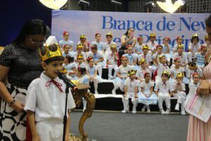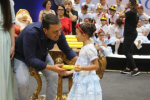 Os estudantes das unidades participantes subiram ao palco para apresentações e momentos simbólicos, acompanhados pelas equipes escolares e pelos responsáveis, que lotaram o ginásio em todos os quatro períodos de cerimônia. A programação incluiu músicas relacionadas ao universo dos contos clássicos e atividades tradicionais da formatura.