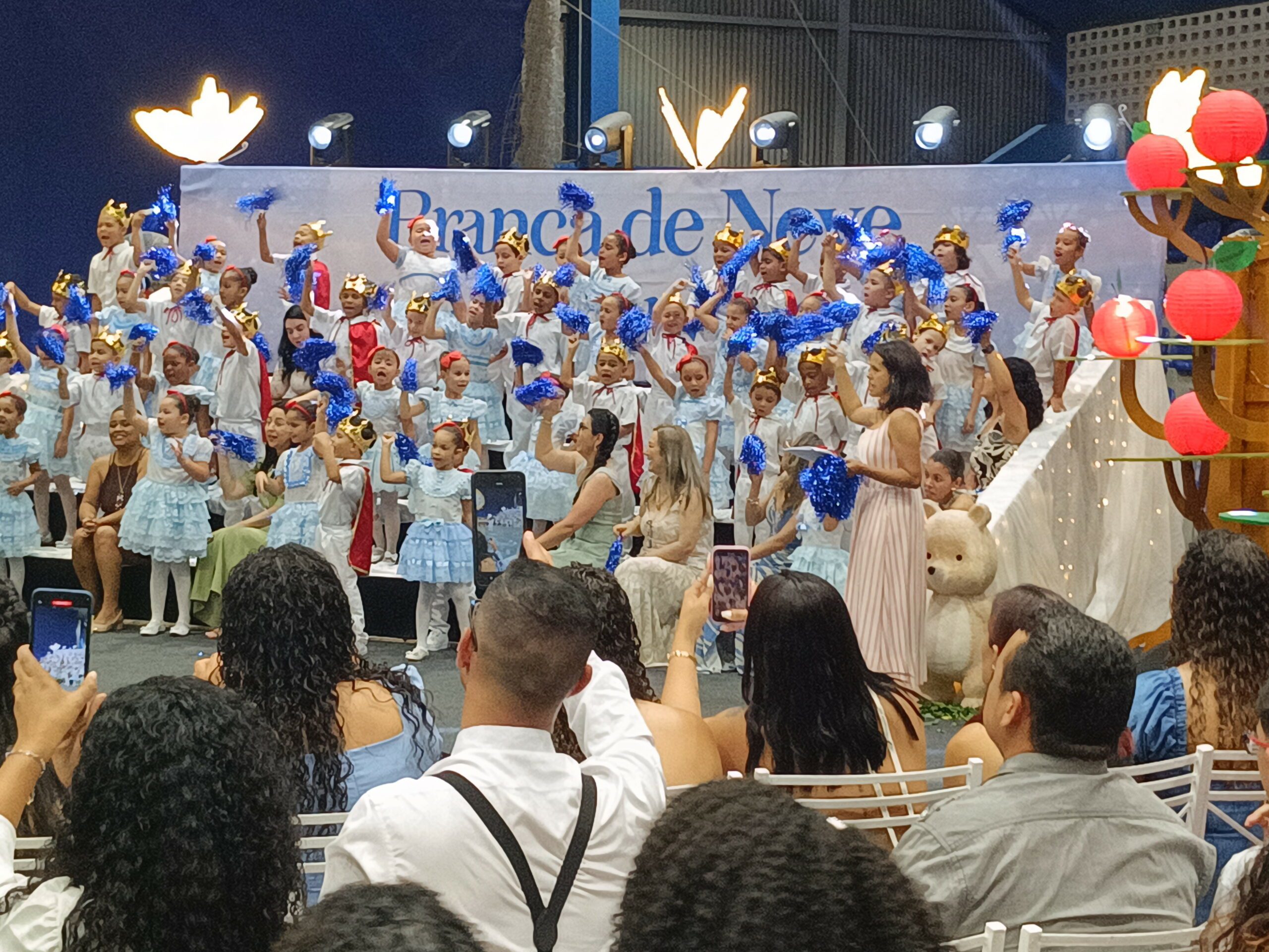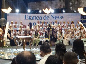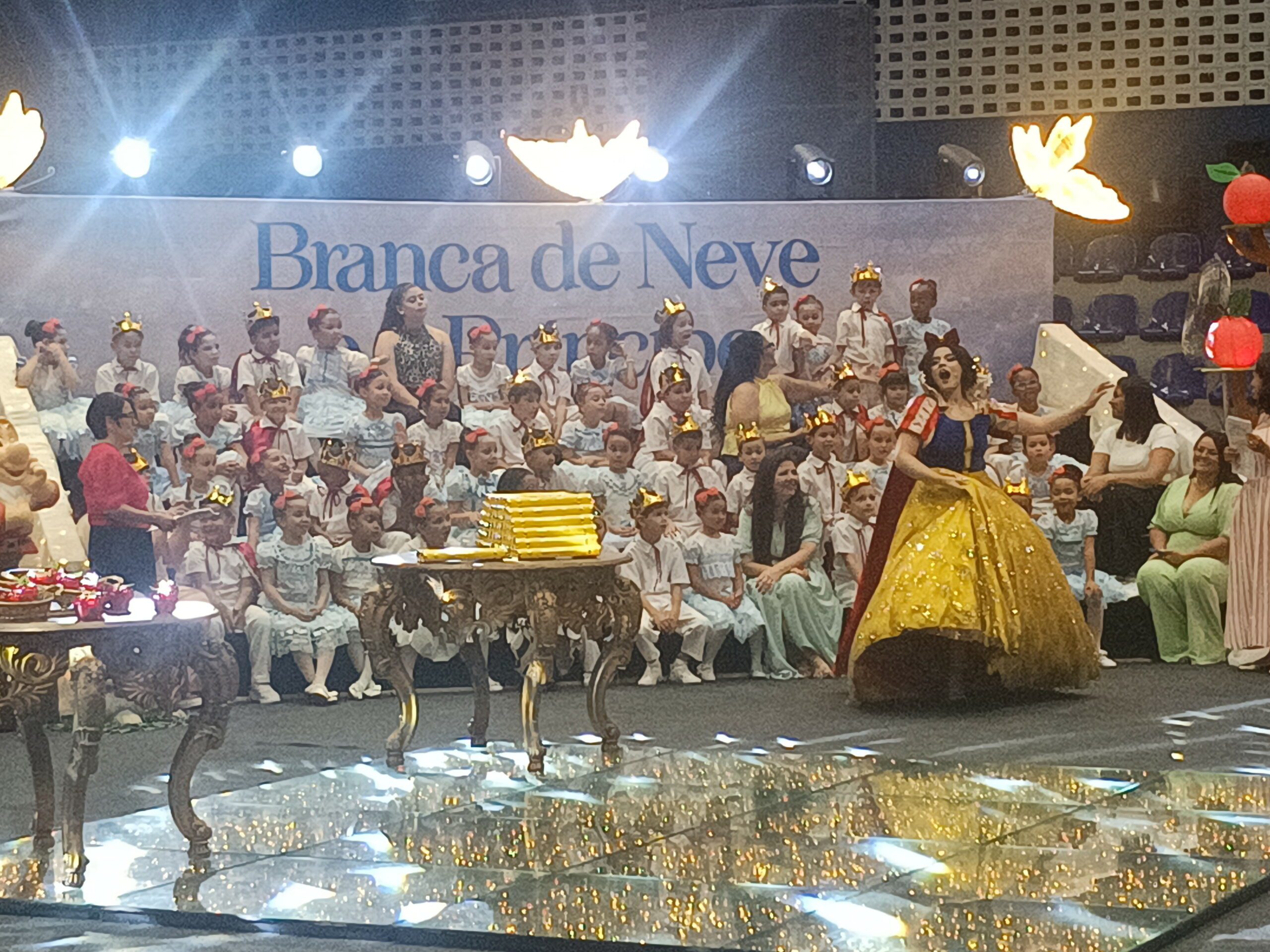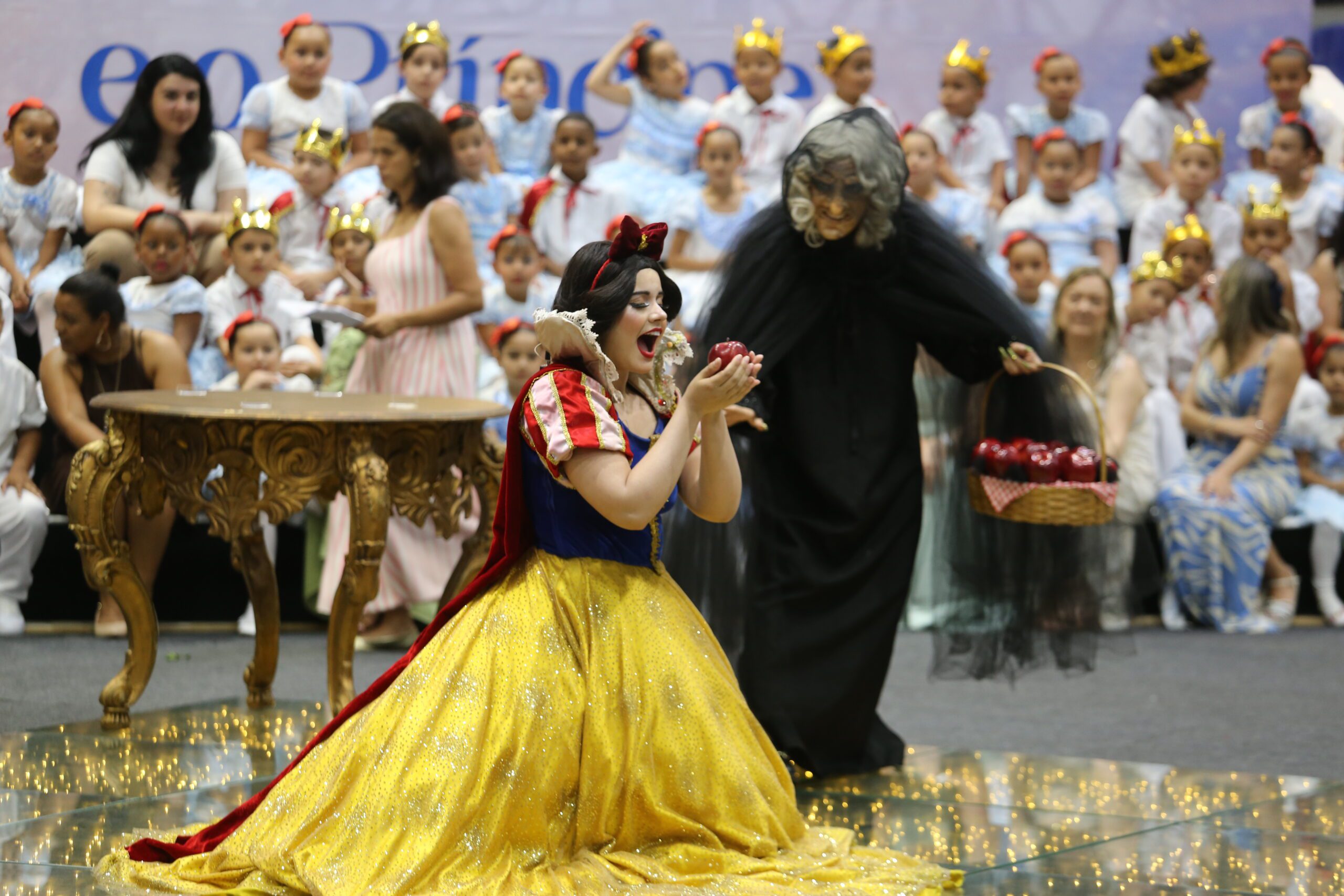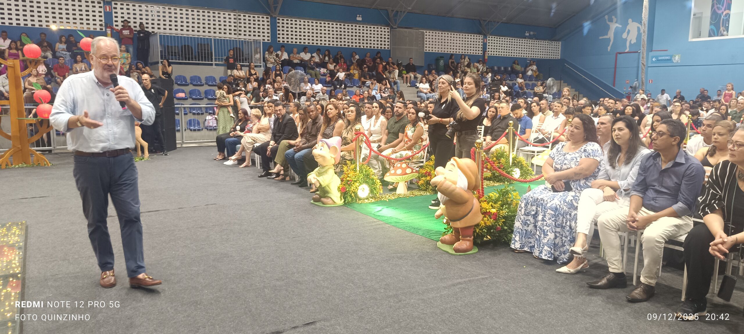 Os estudantes das unidades participantes subiram ao palco para apresentações e momentos simbólicos, acompanhados pelas equipes escolares e pelos responsáveis, que lotaram o ginásio em todos os quatro períodos de cerimônia. A programação incluiu músicas relacionadas ao universo dos contos clássicos e atividades tradicionais da formatura.