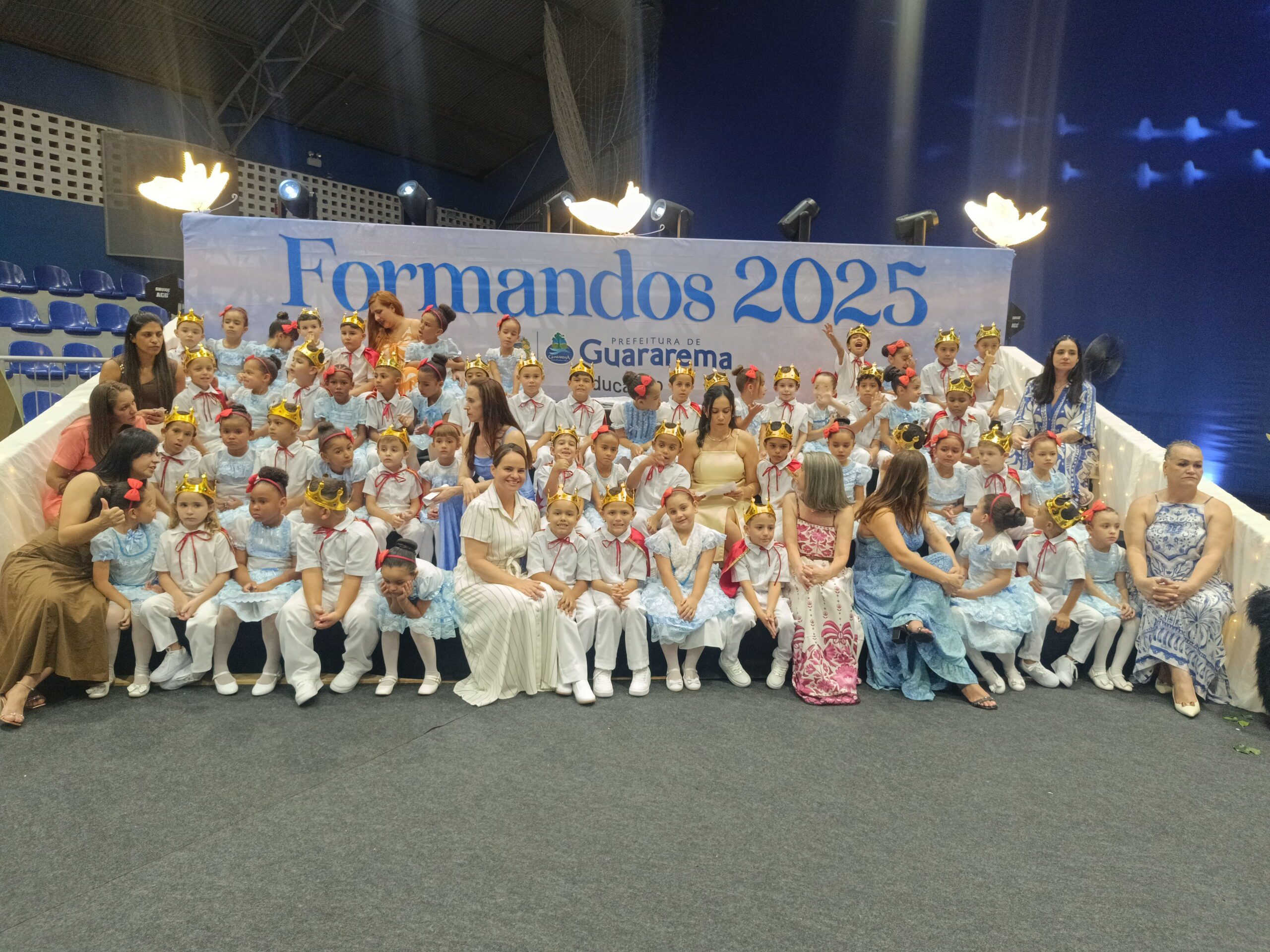 O Ginásio Municipal Lázaro Germano recebeu, nos dias 08) e 09/12, as formaturas da Educação Infantil da Rede Municipal de Ensino de Guararema. As cerimônias da conclusão do ciclo de mais de 450 alunos foram realizadas em dois horários, das 16 às 18 horas e das 19 às 21 horas, e tiveram como tema “Branca de Neve e o Príncipe”.