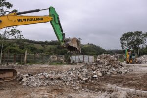 A Prefeitura de Guararema iniciou uma nova e sustentável etapa na limpeza do terreno localizado na avenida Antonio Teixeira Muniz, no bairro Ipiranga, na entrada da cidade. Área desapropriada e adquirida pelo município, o endereço teve o antigo prédio demolido e os resíduos agora se transformam em cascalho para aplicação em estradas vicinais do município.