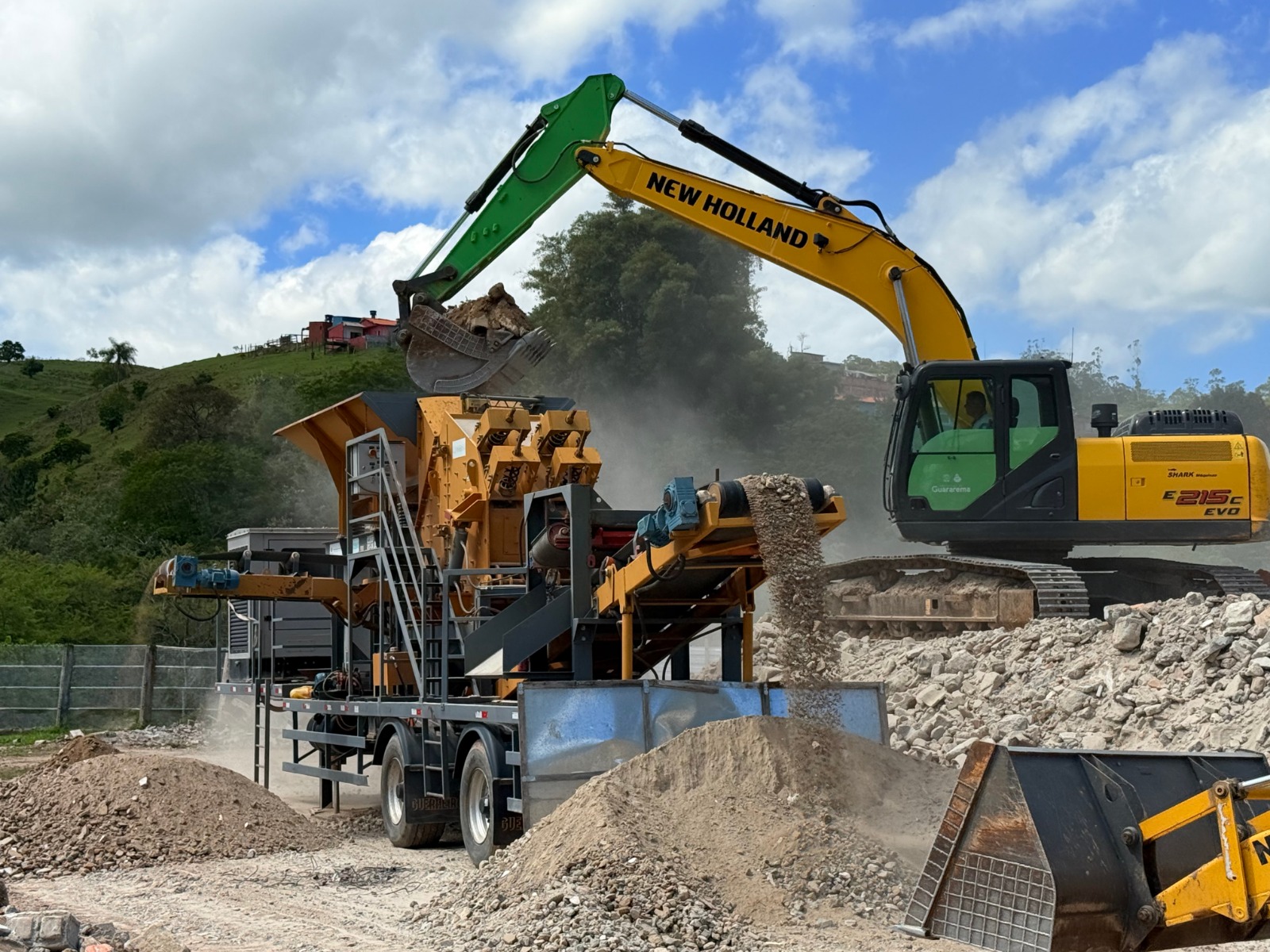 Processo de transformação sustentável de entulhos é realizado com usina móvel de reciclagem do Condemat+ e reforça compromisso ambiental de Guararema